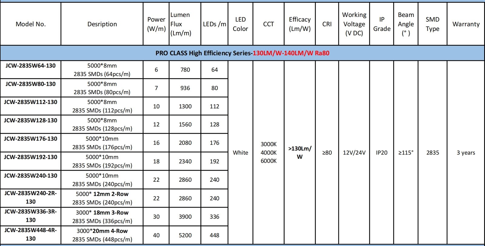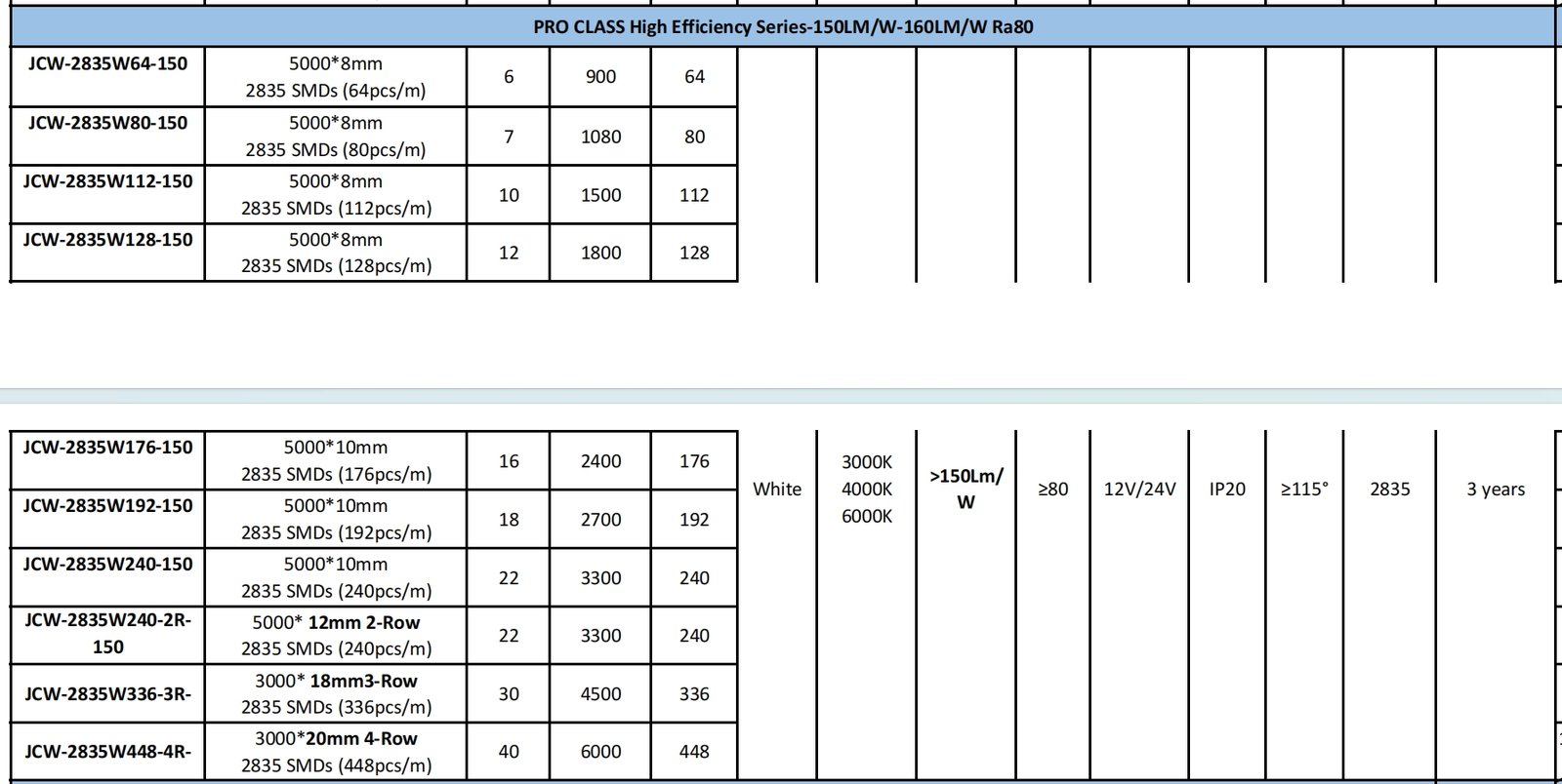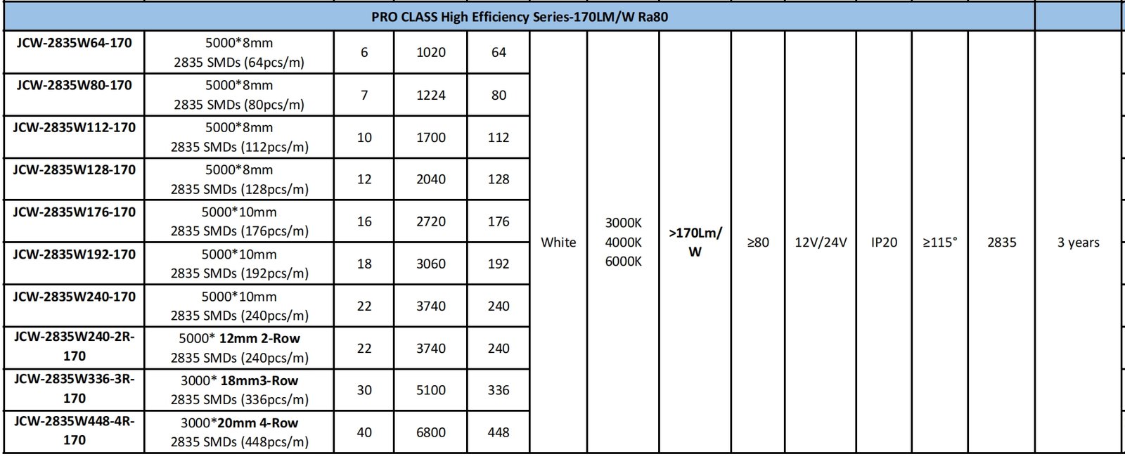 High Efficiency LED Strips 130lm/w;150lm/w; 170lm/w