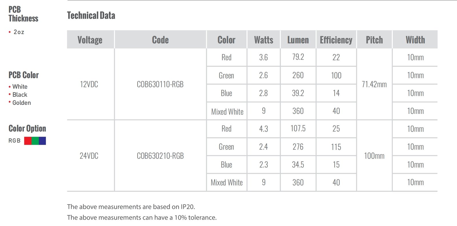 - Model:JCW-RGB630F010W-COB
